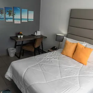 Os quartos do Boulevard Hotel oferecem cofre, local de descanso e controle de temperatura, bem como as vistas para o mar.